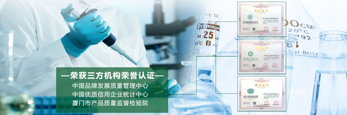 晉江威卡樂涂料有限公司是一家集硏發、生產、銷售、服務于一體的專業化技術型環保涂料廠家,主營:福建油性涂料。福建水性涂料、福建特種涂料等,公司立足高遠,開拓創新,專業硏發制造地涂料、特種涂料等產品。特別在水性漆領域(水性機床設備漆、水性汽車漆、水性烤漆、水性玻璃漆)等方面取得創新性發展.公司研發中心開發的下一代戰略級新產品水性工業漆產品。威卡樂公司新開發的水性工業漆產品是一種創新型配方體系,據專家評定介紹,該產品與市場上現有的水性漆產品相比,其特點在于性能更優而其成本更彳氐,與傳統溶劑型工業漆產品相比,其技術性能指標已經達到傳統溶劑型工業漆產品性能標準,而其綜合應用成本又與溶劑型產品相當,優點是更環保,無論是在生產過程還是在使用過程,對人類健康更友好更環保,具有很高的性價比和市場應用前景。 威卡樂公司將致力于發展成為水性工業涂料的優先解決方案供應商,為合作伙伴提供從個性化產品研發、培訓 應用服務全過程全方位的優質服務。在傳統溶劑型產品方面,威卡樂公司主要硏發生產工業裝備涂料產品系列,廣泛用于機械裝備制造和重防護領域。威卡樂公司推介的不僅